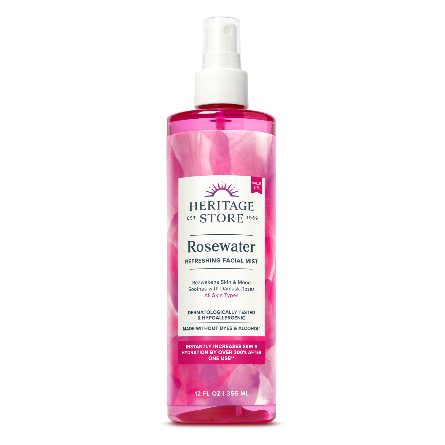 Damask Rose soothes and softens skin while Glycerin locks in moisture, helping to set makeup or create a dewy, naturally radiant glow.