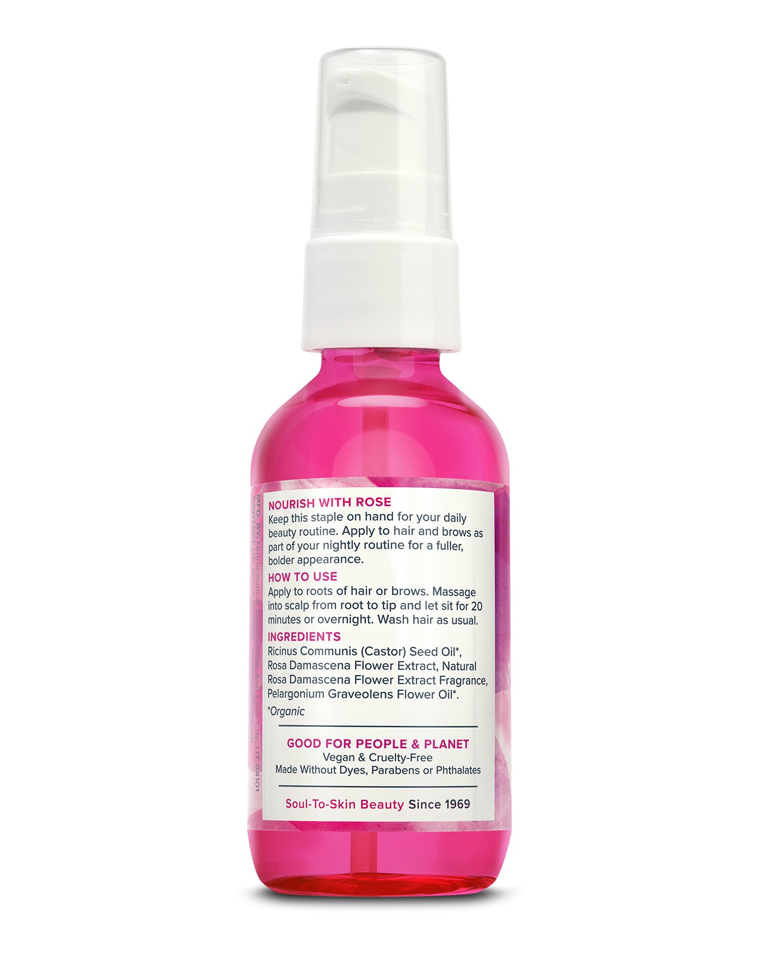 Naturally bright and beautiful. This richly nourishing formula combines three rose essential oils with organic castor oil to help hydrate, smooth, and soften your hair and brows. Castor oil on skin is also a great to moisturize dry areas like elbows, knees and cuticles. This nourishing oil also features our signature rose scent.