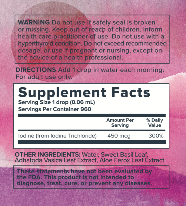 Iodine (from Iodine Trichloride), Water, Sweet Basil Leaf, Adhatoda Vasica Leaf Extract, Aloe Ferox Leaf Extract