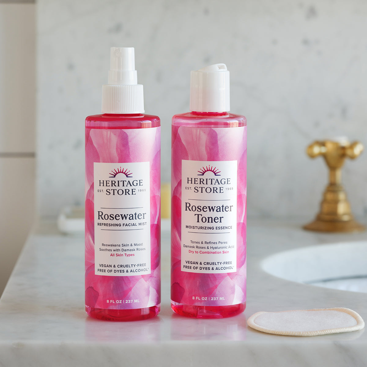 Choose between our signature Rosewater Facial Mist or our classic Rosewater Toner. Prep your skin for any fresh-faced makeup look, while awakening the senses with our signature rose scent.
